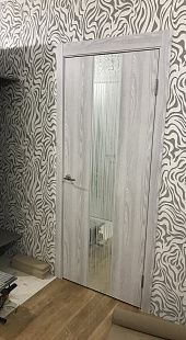 Дверь ПО EXZ 6E Клен айс стекло зеркало с рисунком из Экошпона COVERFLEX (Двери Нева) в с установкой и доставкой