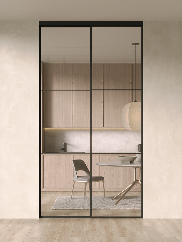 Купить дверь MinoLite-S 6 черная стекло прозрачное в с установкой и доставкой