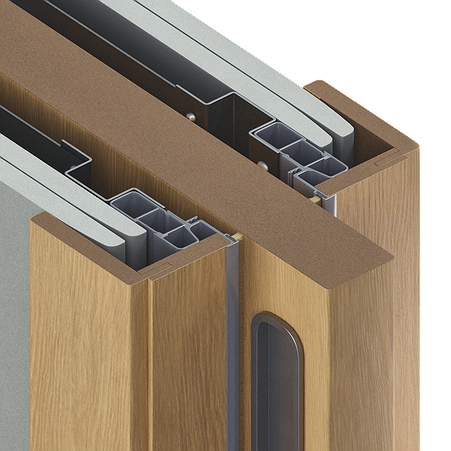 Пенал, предназначенный для установки одного полотна, обрамлённого доборами и наличниками, в проём, сдвигающегося влево или вправо. Подходит для монтажа в стены толщиной до 150 мм. Может использоваться при новом строительстве или ремонте.